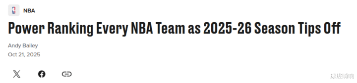 在常规赛正式开打之际,美媒《bleacherreport》更新公布NBA最新实力榜,其中勇士队第9,快船队第10,湖人队排名跌至第7,火箭队升至第3。